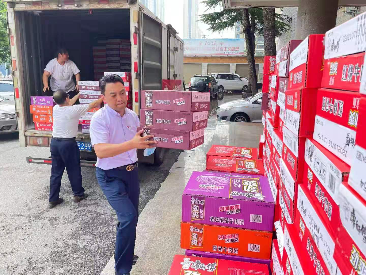 捐贈儀式上,公司在前期捐款10萬元的基礎(chǔ)上,再捐贈500箱方便面、500件純凈水,爭取抗洪救災最后的勝利, 一起重建家園,安居樂業(yè)!